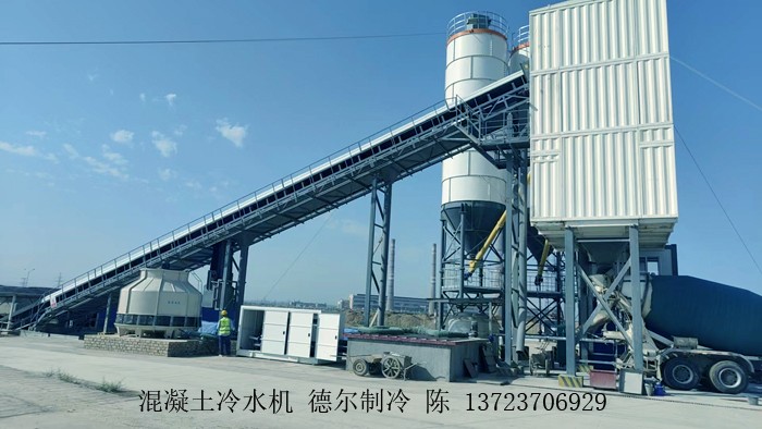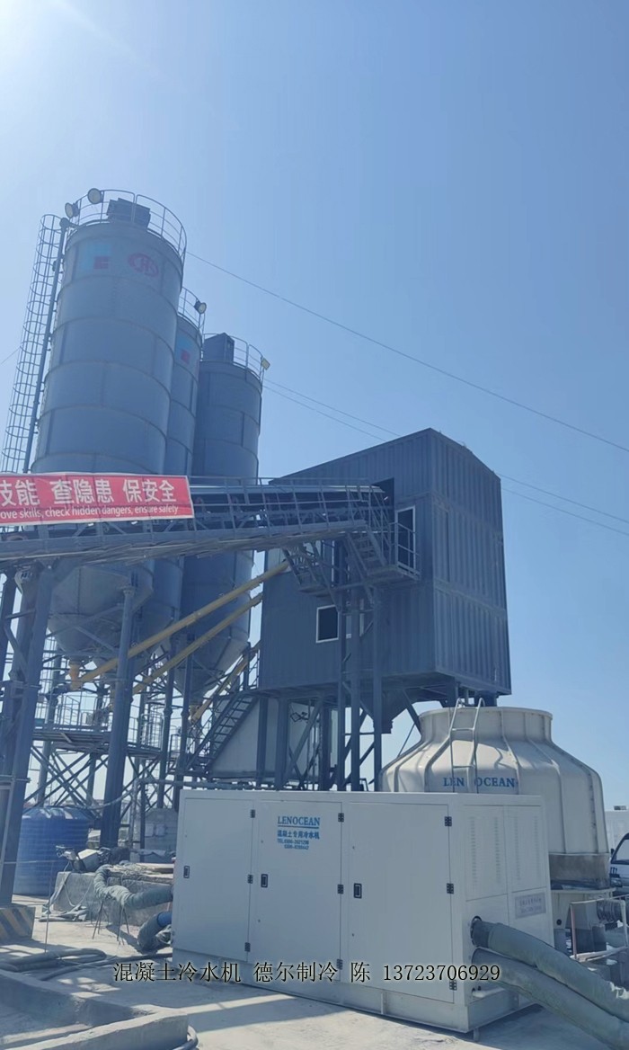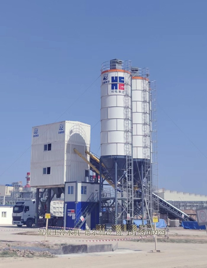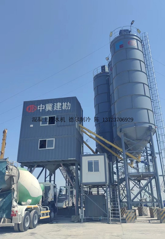 在中冀建勘混凝土攪拌站,混凝土冷水機為攪拌站提供低溫冷水,為混凝土降溫。